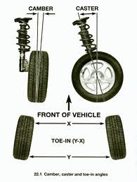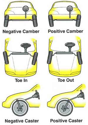 การเอียง ยางส่วนบนกางออกในลักษณะ \ / เพื่อให้ยางรับ น้ำหนักบรรทุกได้พอดีกับหน้ายาง เมื่อใช้รถ ไปนานๆ มุมของ CAMBER