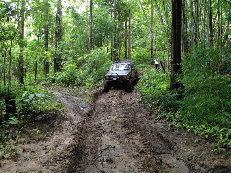 ภาพช่วงเข้าป่าต้นสักไม่มีแล้ว ให้ดูอารมณ์เส้นทางของป่าไผ่ กิ่งก้านพริ้วไหว กรีดกรายรอบวัตถุที่ลุยโคลนเลนเละเทะตลอดเส้นทาง