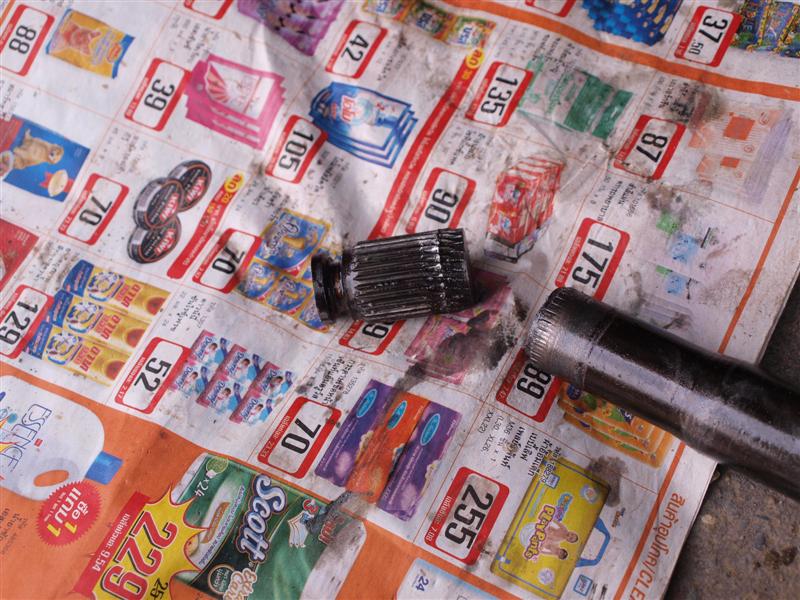 รูปนี้จะเห็นว่าทางซ้ายยังติดกันอยู่เลย เพลาหน้าขาดกันไปแล้ว วินส์ก็พังตามด้วยก็เลยต้องช้าหน่อย