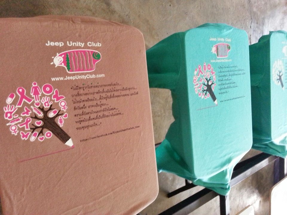 "เสื้อเพื่อชีวิต" เพื่อเป็นทุนต่อสู้กับโรคมะเร็ง ของแม่น้องโฟร์วีลส์ ลูกชายของผม เธอคือคู่ชีวิตนักเดินทาง นั่งคู่กับผม เป็นเพื่อนเดินทางบนรถ Jeep คู่ชีพ คุณกระทิงเฒ่า คันนี้ ไปทุกเส้นทางมา 10 ปีโดยไม่เคยบ่นอยากได้รถคันใหม่เลย ครอบครัวเรารัก Jeep คันนี้มาก ตอนนี้เธอกำลังต่อสู้กับโรคมะเร็งครับ โดยครอบครัวเรากับเพื่อนๆ ช่วยกันทำ เสื้อเพื่อชีวิต ตัวนี้ออกมาจำหน่ายเพื่อหาทุนในการรักษาด้วยตัวเองซึ่งมีค่าใช้จ่ายค่อนข้างสูง เพราะอาการของโรคไม่สามารถรอสวัสดิการของรัฐ หรือรอคิวใดๆ ได้โดยเสื้อดังกล่าวจะเป็นเสื้อยืดผ้า Cotton 100% มี 2 สี คือสีเขียวและสีน้ำตาลอ่อน ใส่แล้วไม่ร้อน ที่คอตัดเย็บดีไม่เหมือนเสื้อยืดทั่วไป แต่ size จะเล็กกว่ามาตรฐานเสื้อยืดในท้องตลาด โดยขนาดรอบอก