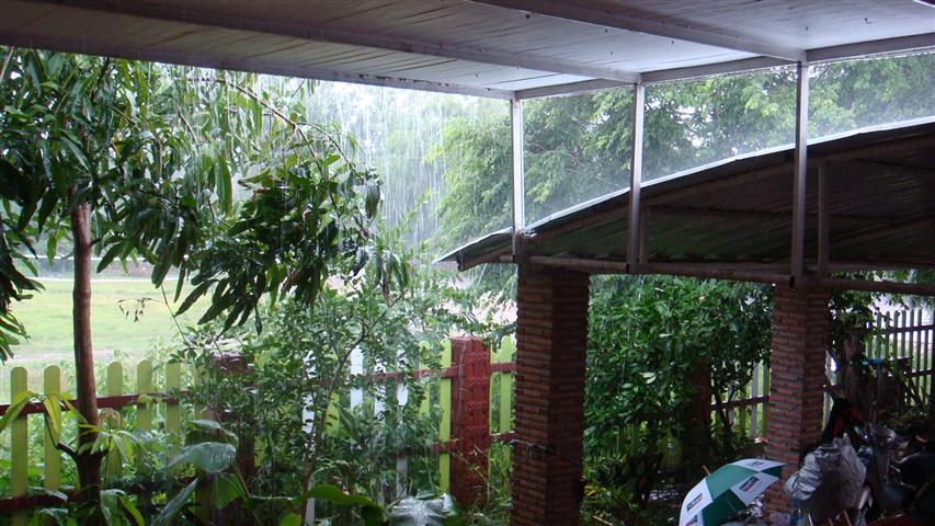 สวัสดียามเช้าครับผม ฝนตกตั้งแต่ตีห้ากว่าจนถึงขณะนี้ยังไม่หยุดเลยครับ ตกชนิดว่าแรงแบบไม่ขาดเม็ดดีครับได้น้ำฝนแต่ติดตรงที่ว่าวันนี้เขาทำบุญตักบาตรกัน