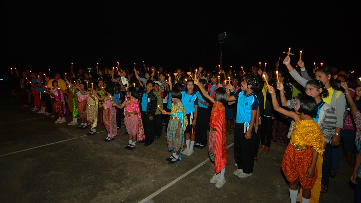 18:45 ตั้งแถว จุดเทียนถวายพระพร ร่วมกับชาวบ้านและชุมชน