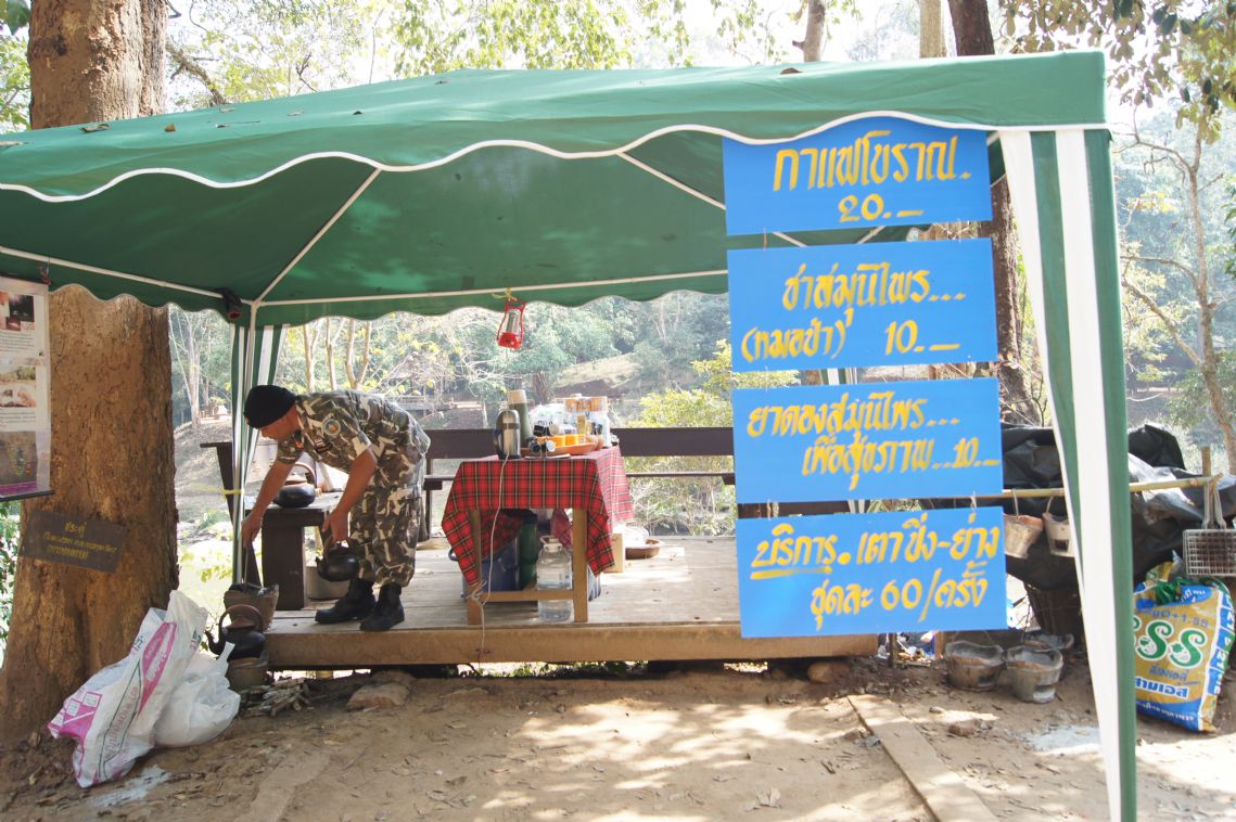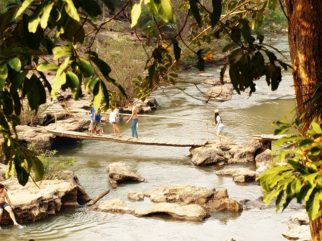 มีสะพานไม้ไผ่ที่ทางอุทยานทำไว้เพื่อให้ข้ามไปอีกฝัง มีร้านค้าเล็กไว้คอยบริการทั้งอาหารตามสั่ง ของคบเคี้ยวและอีกมากมาย...