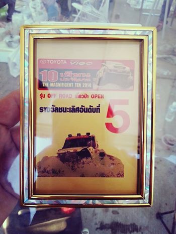 ถึงแม้ปีนี้จะยังไม่สำเร็จ เอาป้ายรางวัลของรายการ 10 เซียนประจัญบาล 2014 มาให้ดู รถทีมนี้กลายเป็นสัญลักษณ์ของรายการแข่งรุ่นเที่ยวป่า Open ของประเทศไทยไปแล้วคร๊าบบบบ