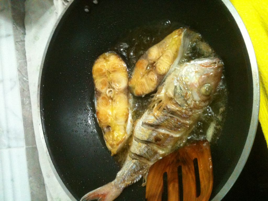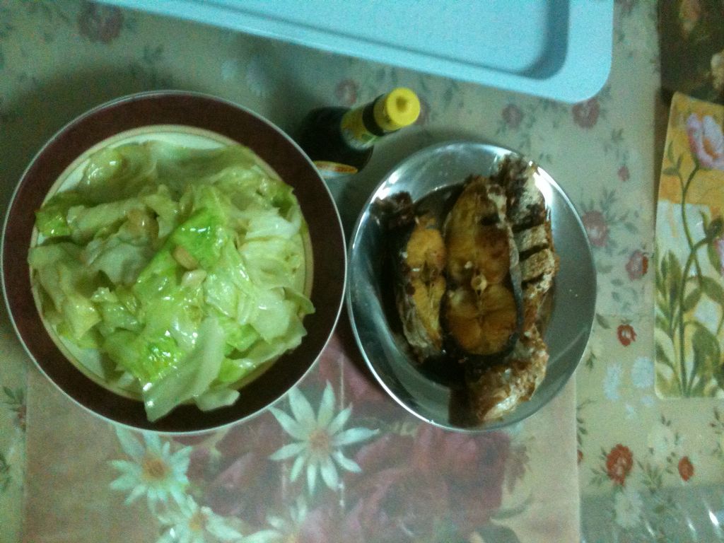 ปลาทอดกับกระหล่ำปลีผันน้ำปลาครับ