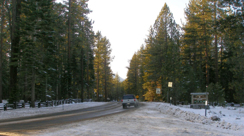 การเดินทางเราใช้เส้นทางไฮเวย์ 395 ซึ่งจะแยกจากฟรีเวย์สาย15ที่ไปลาสเวกัส (Las Vegas ) ที่เมืองวิคเตอร์วิว ( Victorville ) ที่มีวิวสองข้างทางที่สวยกว่าจะไปฟรีเวย์อินเตอร์เสตรท 5 หรือสาย 99 ที่ส่วนมากจะวิ่งผ่านฟาร์มเลี้ยงสัตว์และแหล่งเพาะปลูกพืชไร่ที่จะมีอยู่เกือบตลอดสองข้างทาง