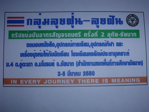 3 มีนาคม เดินทางออกจากระยองตอนเช้ามืดนัดพบกับกลุ่มที่จุดพักรถมอเตอร์เวย์เดินทางถึงโรงเรียนประมาณบ่ายๆแข่งกีฬาเชื่อมสัมพันธ์(ตะกร้อ)บริจาคสิ่งของ/กางเต๊นท์พัก + อาหารเย็น + เครื่องดองของมึน + ดนตรีจากกลุ่มและหมู่พวก/