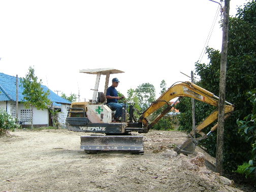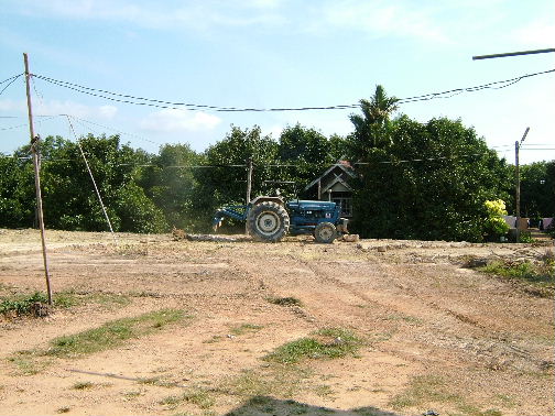 ถมที่เพิ่มครับ ทีแรกกะจะทำเล็กๆ แต่คิดไปคิดมา กว้างขึ้นอีกหน่อย ก็ดีเหมือนกัน ตอนนี้เลยปาเข้าไป 44x39 เมตร ต้นมังคุดหายไปหลายต้นเลยครับ