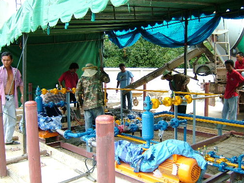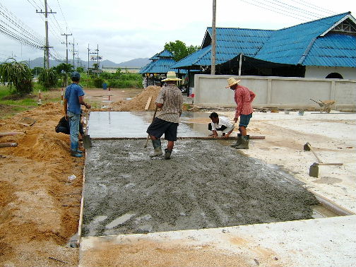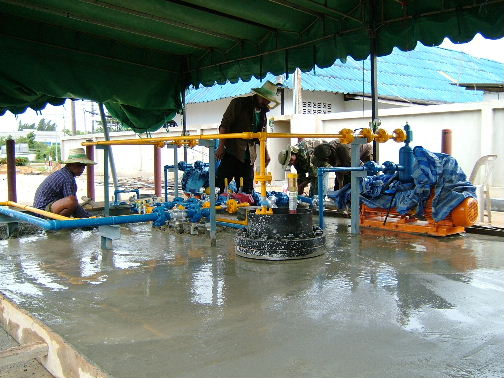 หลังจากถมทรายเต็มก็เตรียมเทปูนปิดฝาบ่อ