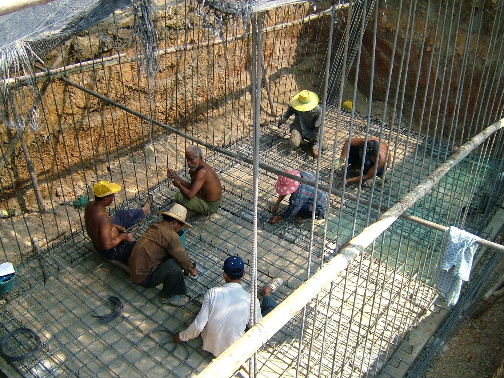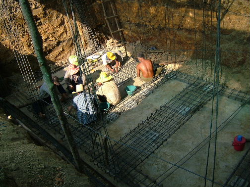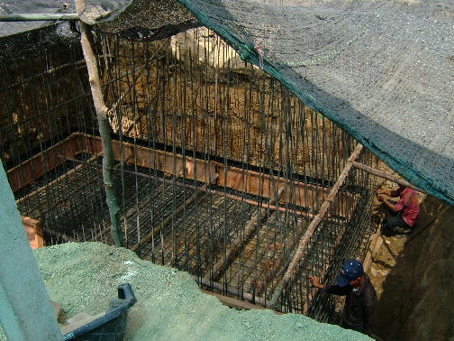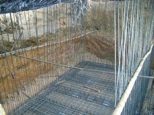 เหล็กพื้นก้อเสร็จแล้ว ผูกนานหน่อยเพราะพื้นเป็นเหล็ก 2 ชั้น คราวนี้ก้อเหลือแต่เหล็กผนังแล้ว แต่ ผนังก้อเหล็ก 2 ชั้นอีก