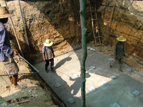 ใส่ water stop เสร็จแล้วก้อเริ่มประกอบแบบด้านในครับ เทแค่เป็น kicker ก่อนครับ