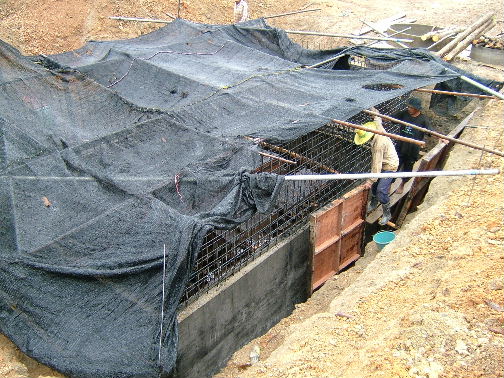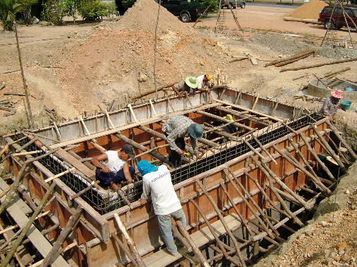นี่ก้อ curing concrete เหมือนกันครับ เพราะจะรีบกลบบ่อไปส่วนนึงก่อนเพื่อที่จะประกอบแบบชั้นสุดท้ายได้ง่ายขึ้น และมีที่ให้ช่างยืนทำงานแบบสบายๆหน่อยครับ แล้วที่สำคัญไม่ต้องเปลืองไม้ค้ำยันมากเกินไปครับ