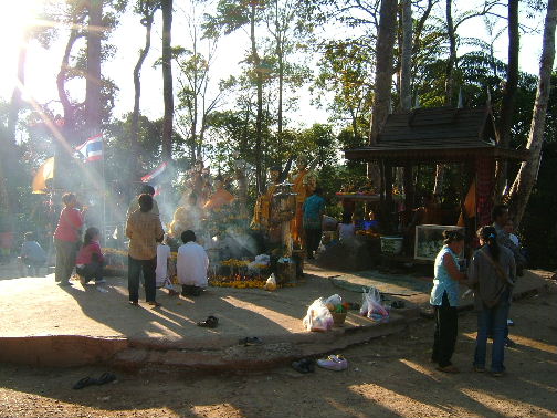 ระหว่างทางขึ้นเขาครับ สังเกตุสองข้างทางจะเต็มไปด้วย ดอกไม้ ธูป เทียน ครับ