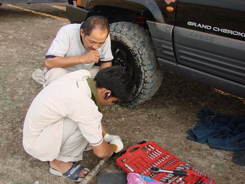 ขึ้นได้ไม่กี่เนินเพลากลางหน้าหลุด หลังจากกระโจนขึ้นเนินชัน งานนี้ต้องตัดต่อเพลากลางเพิ่ม เปลี่ยนโย๊ค เป็นขอ XJ มันจะได้สลิปตัวได้ดีกว่านี้