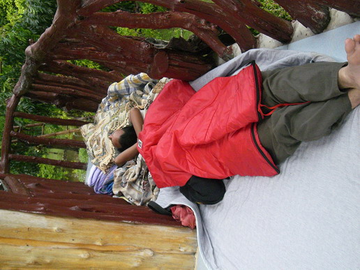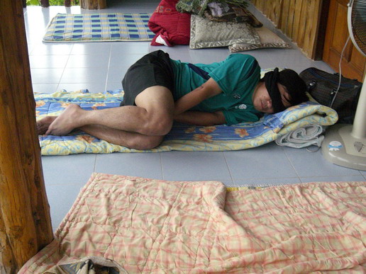 อิอิ...พี่แหม่มครับตอนเย็นวันเสาร์ก่อนที่จะเคลื่อนพลขึ้นเขากระโจมกันผมเห็นมีหลายคนจองพื้นที่กางเต็นท์เรียบร้อยแล้ว แต่ทำไมในรูปกลับนอนเรียงรายกันบนบ้านกันหมดอย่างนั้นละครับ