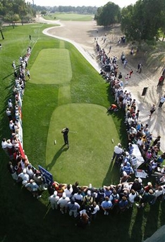 Course marshals repeatedly had to ask the galleries watching Woods and his two partners Colin Montgomerie and Niclas Fasth to stand still and put their cameras away.