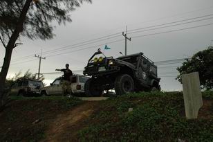 เหล่านักรบจากก๊วนจี๊ปตะวันออก ( จี๊ปทหาร ) เริ่มเคลื่อนตัวลงชายหาด