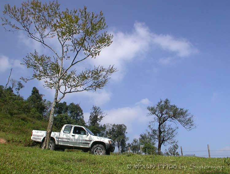 ผมจอดรถรอแล้ววิ่งลงไปถ่ายภาพข้างล่าง....กว่าจะเดินขึ้นมาเล่นเอาหอบเลยครับ...เลยยืนร่ม ๆ เก็บภาพรถตัวเองกับ "ผาตั้วเพ่ง" ไว้เป็นที่ระลึกหน่อย