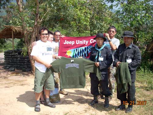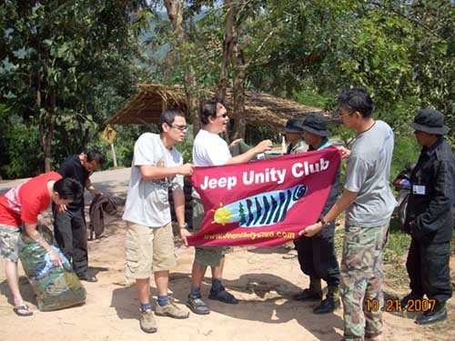 ทำให้ขบวนต้องจอดเจรจาแจ้งความประสงค์ พร้อมกับแจกเสื้อกันหนาว ให้บรรดาทหารพราน ที่คอยดูแลความสงบเรียบร้อย (รอชมภาพจากท่านอื่น)