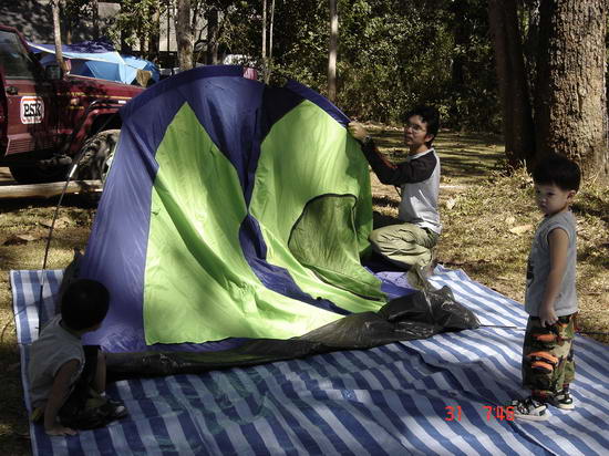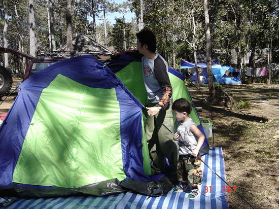 หัดกางเต็นท์ ครับลูกชายนั่งดู