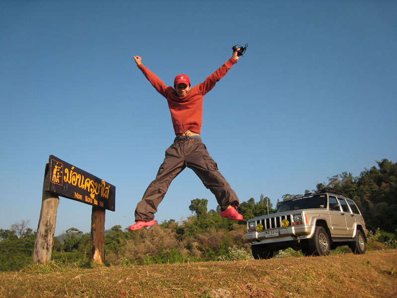 ระหว่างซ่อมสิทช์ พี่ Jeep โฉมเหลี่ยม 97 ออกเดินทางล่วงหน้าไปก่อน แล้วก็มาเจอกันอีกครั้ง เลยจอดถามว่าเป็นไงบ้าง เห็นขับช้าๆ พี่เค้าบอกสบายมาก แค่ถังรั่ว...โอ...สุดยอดครับ บ่ยั่น ขนาดถังรั่วนะเนี๊ย