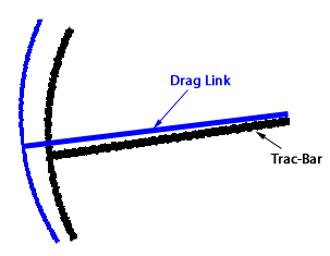 Lets examine the components of a typical steering set-up. The axle is supported in place by the control arms and a trac-bar on a TJ suspension. Consider the leaf springs to be the control arms in an YJ/CJ. The drag link is connected to the pitman arm and also the tire rod. The drag link is pushed or pulled by the pitman arm and in turn pulls or pushes the tie rod turning the tires of the vehicle.