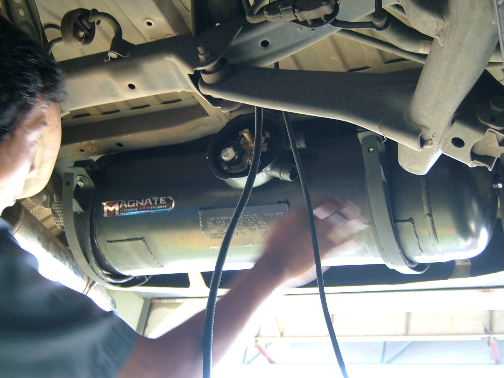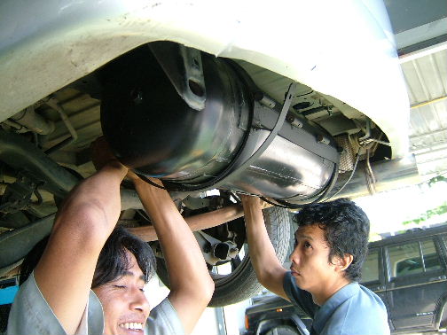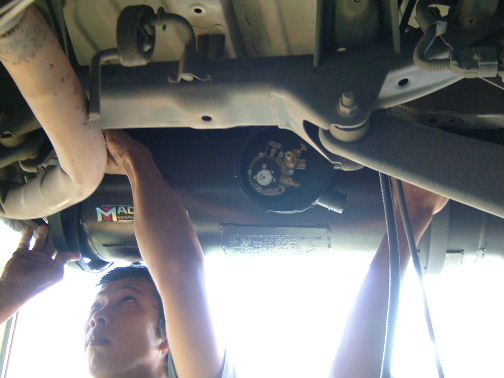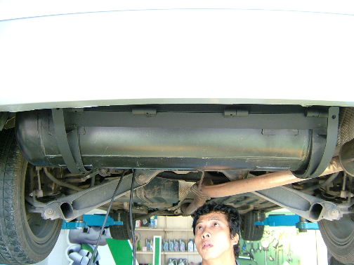 การวางถังใต้ท้องรถ + ถังน้ำมันเบนซินที่ตีขึ้นมาใหม่