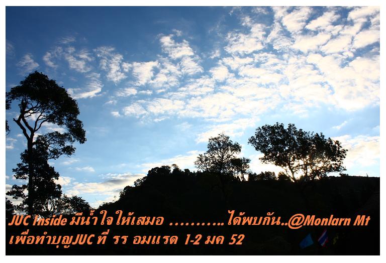 บนยอดดอยม่อนล้านเยี่ยมมากๆๆๆ ถึงจะเป็น 3 คืน 4 วัน เมื่อเห็นสภาพความสวยงามทัศนียภาพ และ ที่สำคัญคือ น้ำใจของเจ้าหน้าที่ อาจารย์ ที่ ดูแลที่นี่ ขอบอกว่าน้ำใจสุดยอดมากๆๆ ที่ให้ที่พัก(มีคณะนายทหารไปพัก หลายๆๆหลัง และ ได้น้ำใจบริหารจัดการ เหลือให้เรา 1 หลัง) เพื่อให้คาราวาน juc ได้พัก และอาบน้ำอุ่นๆๆๆ ..