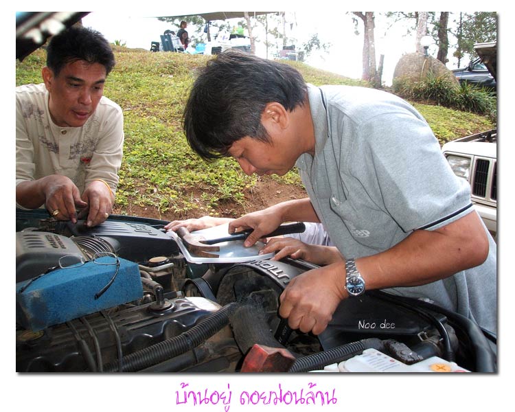 เมื่อถึงเวลาเช้าได้เปิดฝากระโปงรถท่าน พี่เป้า wj ก็ได้ทราบว่ามีข้อมูลที่มั่นใจมากขึ้น แล้วก็ประสานกับท่านโกสมชาย เพื่อจัดหาและจะล้อหมุนจาก resort แม่ปิง นครสวรรค์ เพื่อจะขนอะไหล่ขึ้นดอยม่อนล้านกันให้ทันคืนที่ 2..............................................