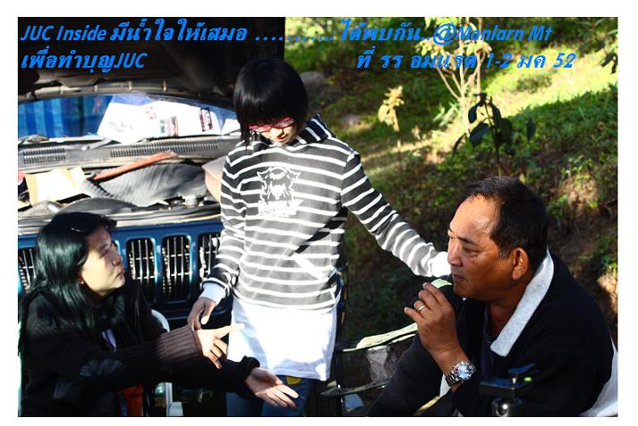 งานเข้าที่ว่า...ที่สร้างและเพิ่มสีสันให้กับดอยม่อนล้านกับพวกเราชาว JUC ....นอกจากเส้นทางเยี่ยมมากๆๆๆ ตื่นเต้นตลอด 5 ชั่วโมง คันเดียวมืดๆๆๆ...... ผ่านร้อยผา-ร้อยเหว ข้ามเขาไม่รู้กี่ลูกจำไม่ได้อิอิ ....มีหลายๆๆจุดที่ต้องจอดลงจากรถและใช้ไฟฉายส่องหาลายข้างหน้าว่าถนนข้างหน้าเป็นเหวหรือถนน อิอิ มันส์ดี แต่อุ่นใจเพราะยังพอมี วอ 144.050 ที่มีชัดบ้างไม่ชัดบ้างเพราะตัวขุนเขาบังสัญญาณ และ มือถือก็พอใช้ได้ ขาดๆๆๆหายๆๆ เช่นกัน อิอิ