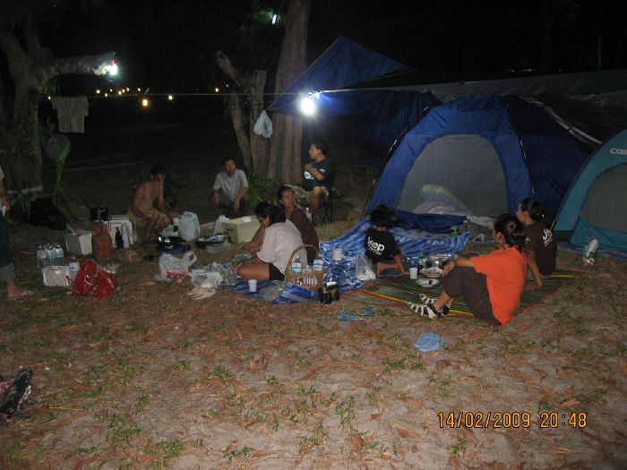 กางเต้นท์กันครั้งแรก ที่เดิมกับที่ นาโยง บ่าววีและซาไก มากันเมื่อตอนปีใหม่ ทำเลนี้ถ้ามองไปด้านหลังจะเห็นถนนซึ่งจะเป็นทางที่เข้าไปสู่หาดวิวาห์ใต้สมุทร ห่างจากจุดนี้เข้าไปประมาณ 1-2 ก.ม. มองไม่เห็นและมีเขากั้น ถ้าใช้สายตาเข้าไปรบกวนเวที คงทำไม่ได้ สรุปผลสุดท้ายคือเราต้องเก็บเต้นท์กันออกมา