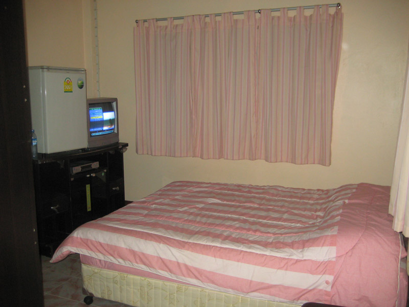 ด้านในห้องพักมีแอร์ พัดลม เครื่องทำน้ำอุ่น ตู้เย็น พร้อม