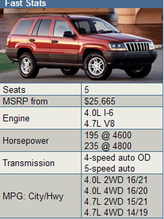 The Jeep Grand Cherokee Limited Sport Utility continues to be a popular trend-setter well into 2002. The new line up for this year stays true to the Jeep tradition of handling rugged terrain and adverse weather conditions easily. However, these days you are just as likely to find families and business people driving around town in these SUV's, as they have become somewhat of a practical status symbol.