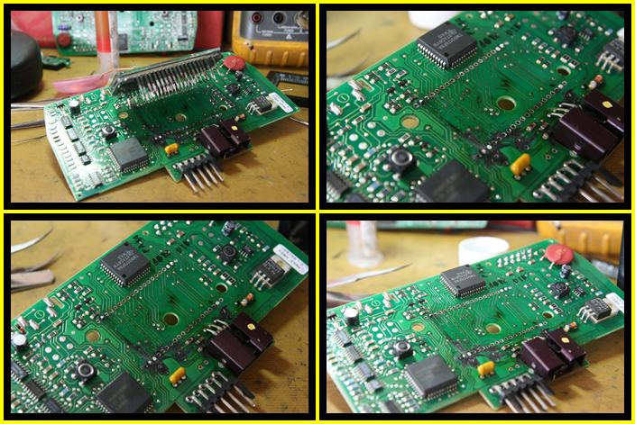 หลังจากถอดจอออก ก็ล้างๆขัดทำความสะอาด รวจเช็คลายวงจรที่ขาด จากนั้นก็เชื่อมต่อ บายพาสวงจรใหม่