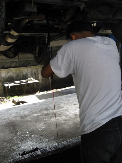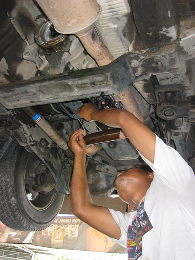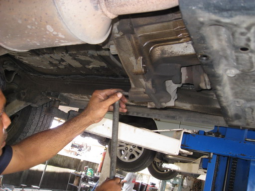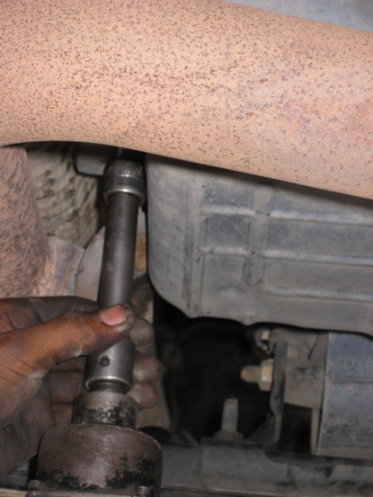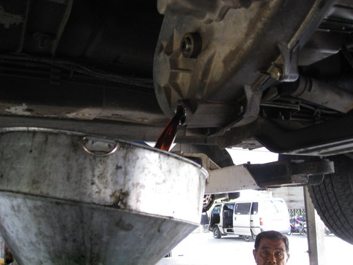 ถอดยางหิ้วท่อไอเสียเพื่อถอดอ่างเกียร์