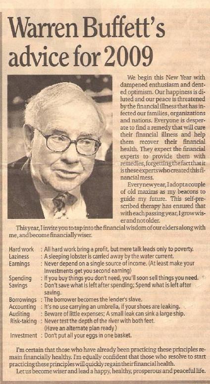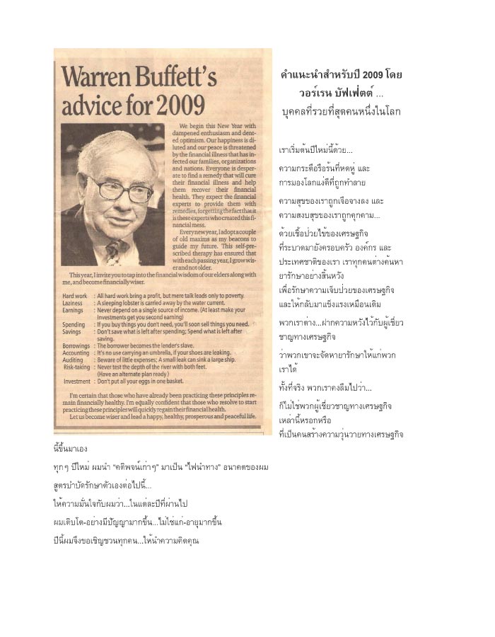 เรื่อง is back การลงทุนใช้ตัง ก็นี่เรย warren buffet advice for 2009 แนะนำ การ เอาตัวรอดแบบ happy ending อิอิ