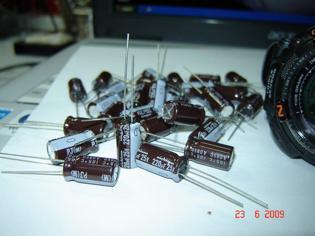 ****Capacitor หมดอายุหมดแล้ว ..และมันจะคลายน้ำกรดออกมา กัดแผ่นวงจรPCBทำให้ลายวงจรขาดแล้ววงจรมันจะช๊อตกัน(อันนี้ล่ะที่เกิดปัญหา)