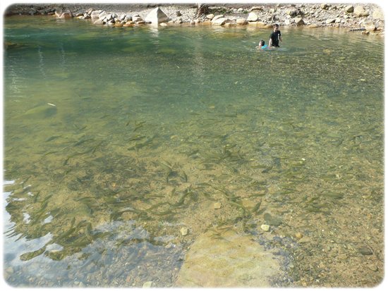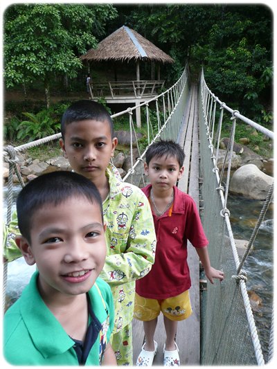 ตื่นเช้ามา เด็กๆ ก็มาเล่นน้ำตกกันต่อ ให้อาหารปลาไปด้วย