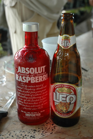 ถึงบ้านพี่บอล ก็ออกมาต้อนรับเลย ขนมไม่มีแกบอกมีแต่เหล้ากิงป่าว