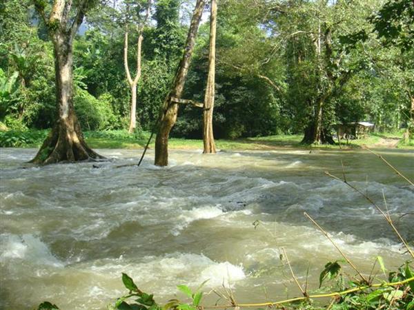 ดูสภาพน้ำหลาก ตอนนี้ยืนอยู่แผ่นดินคลอง 1 อีกฝั่งเป็นแผ่นดินคลอง 2