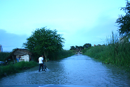 ตอนนี้ทางเข้าบ้านเป็นแบบนี้ น้องๆ คลองมะเดื่อ คับ ลุยน้ำมา 2 วันแล้ว