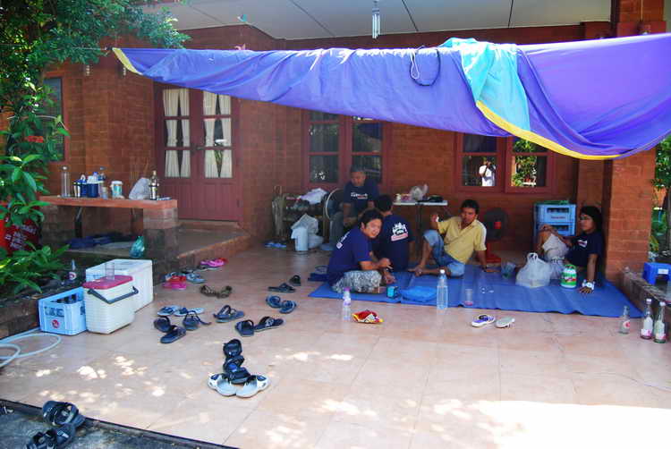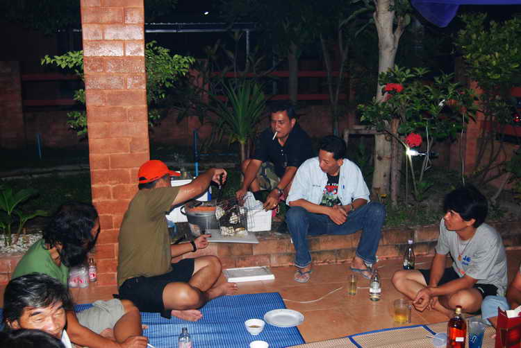 นี่รักเพื่อน....นอนเชียร์ท่านหมอกดำซ่อมรถ.....ก่อนจาออกแรงกันตอนเที่ยงคืน.....................