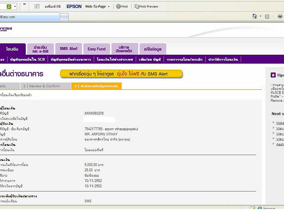 10/11/2009 ฝากโดยเงินสดโดยไม่มีสมุดคู่ฝาก 2,000.00 47,618.41 สาขาถนนรามอิน ท่านพงษ์สะพานใหม่ 1,000 บาท และ AUD JAPAN 1,000 บาท