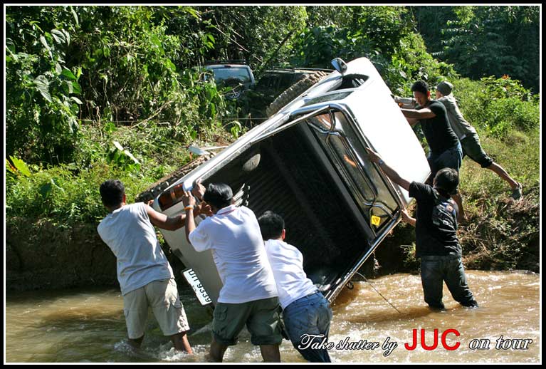 ปรากฎว่า หลังจากดึงไอ้หนุ่มสามเกียร์ขึ้นมาได้ ตัวเองลืมดูว่าข้างหลังเป็นตลิ่งชัน