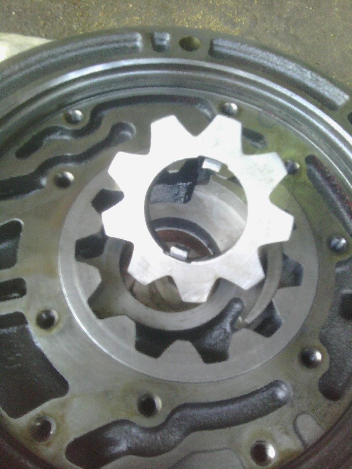 ได้ความแล้วครับ ปรากฎว่าเฟืองที่เห็นในภาพแตกครับ น้ำมันในห้องเกียร์ก็เลยไม่มีแรงดัน กว่าจะรู้ก็เกือบข้ามปี