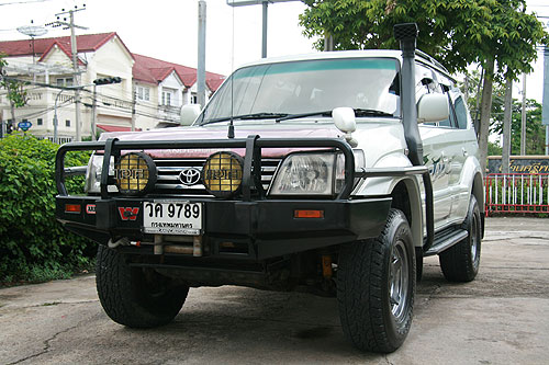 ผมก็เลยคิดว่า ต้องติดการ์ดกันชนหน้าจะดีที่สุด ตอนที่ขาย d4d ให้น้องที่ทำงานไป ก็เล่าให้เค้าฟังครับ และเตือนเลยว่า ห้ามเอากันชนตัวนี้ออกเป็นอันขาด พอมาขับพราโด้ มันดูเหมือนจะขาดความมั่นใจอะไรไปสักอยางครับ