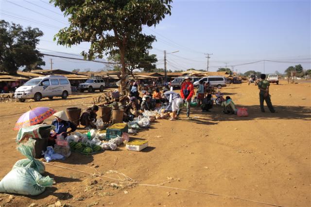 ตลาดใหญ่ข้างทางเลยปากซอง มุ่งหน้าสาละวัน