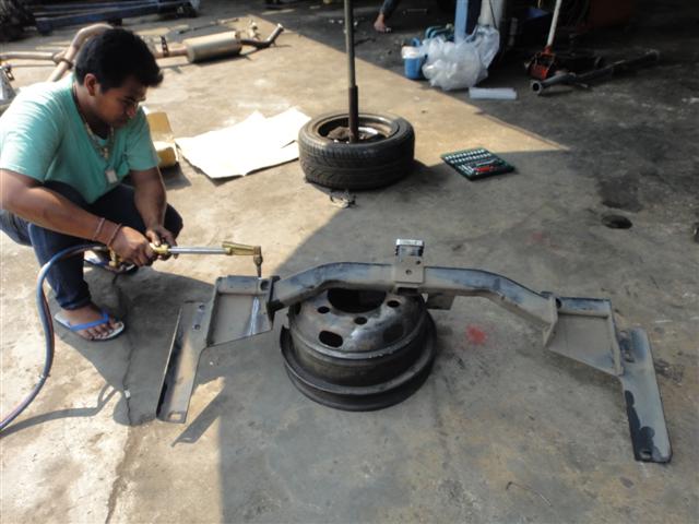 ถอดขอลากเรือลงมา ทำการตัดปีกข้างออก เนื่องจากติดหม้อพัก 2 ข้าง