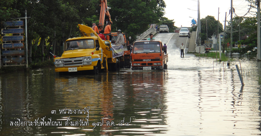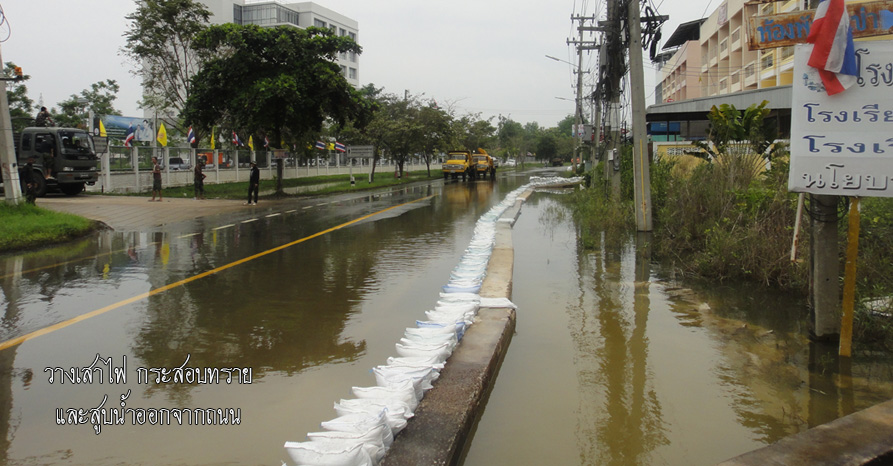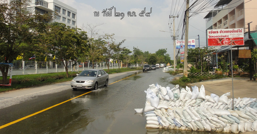 ข้อมูล ณ วันที่ ๒๖ ตุลาคม ๒๕๕๔ มีน้ำขังตลอดเส้นทาง ตั้งแต่แยกสาย ๕ (โรงเรียนบวรรัตนโกสินสมโภชน์) จนถึง มหาวิทยาลัยมหามกุฏฯ