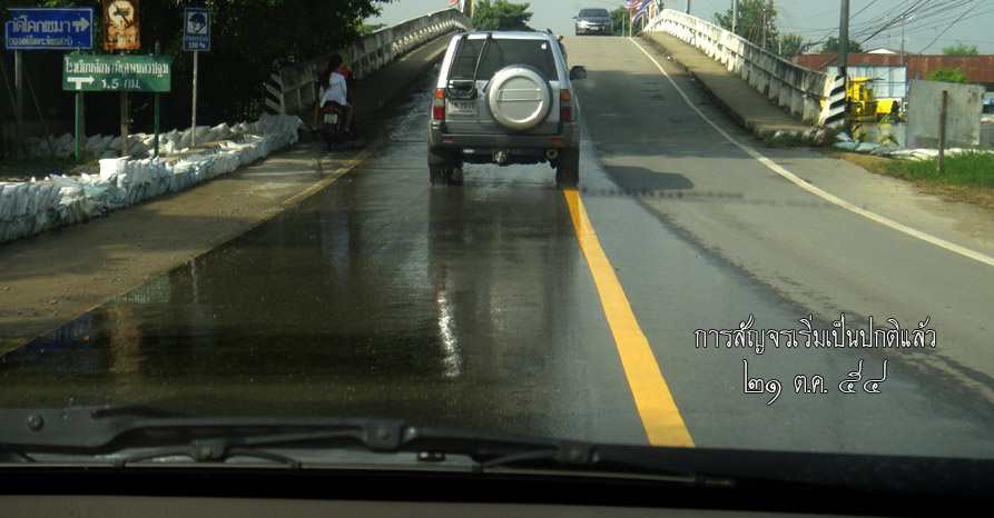 วันนี้ ถนนศาลายา - นครชัยศรี ใช้ได้เกือบปกติแล้วครับ แต่มีน้ำเอ่อบ้างเป็นบางจุด แต่รถเล็กวิ่งได้แล้ว (ข้อมูล ณ เวลา ๑๒.๐๐ น. ของวันที่ ๒๑ ตุลาคม